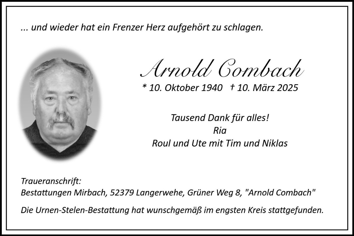 Arnold Combachgestorben am 10. März 2025