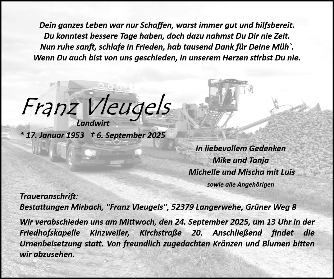 Franz mach et jood, du wirst fehlen.