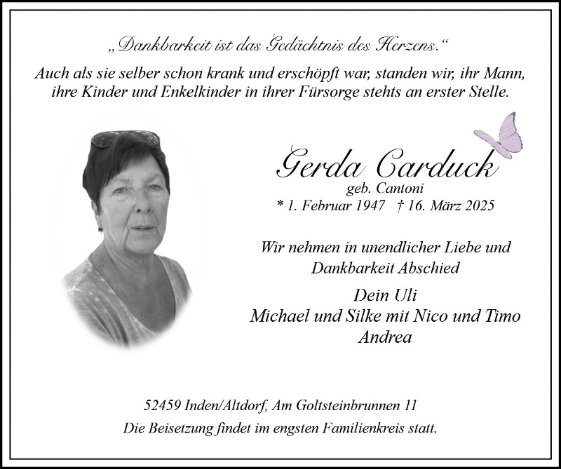 Unser inniges Beileid zum Tode eurer lieben Verstorbenen. Eine liebenswerte Frau, die wir in guter Erinnerung behalten werden.