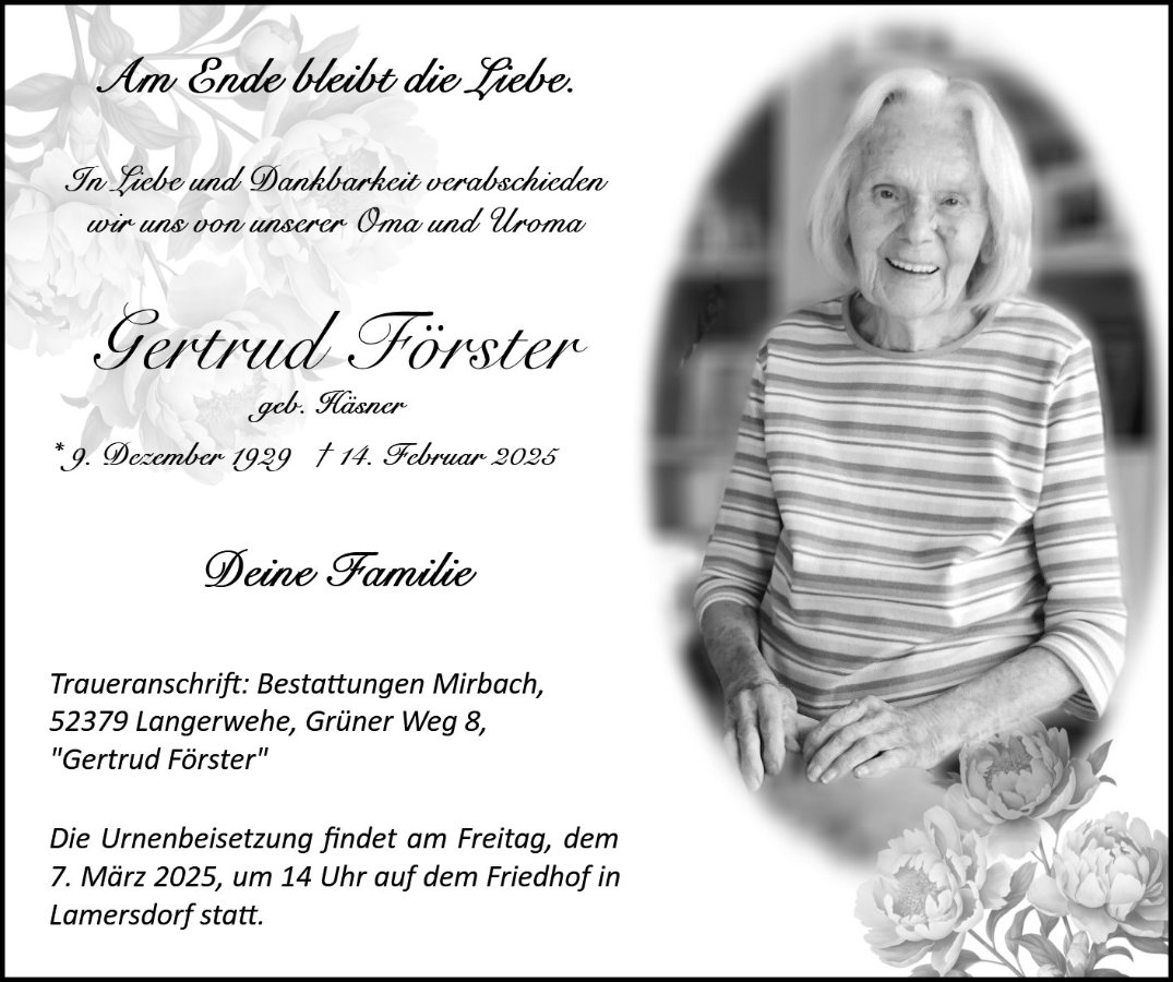 Gertrud Förstergestorben am 14. Februar 2025