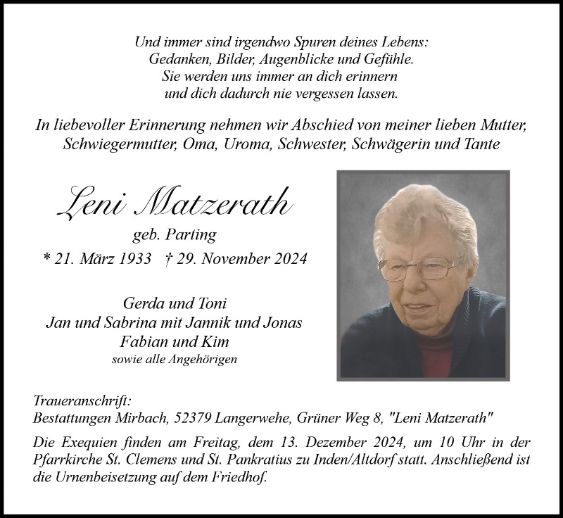 Trauerfeier mit der Urne, Friedhof Inden/Altdorf