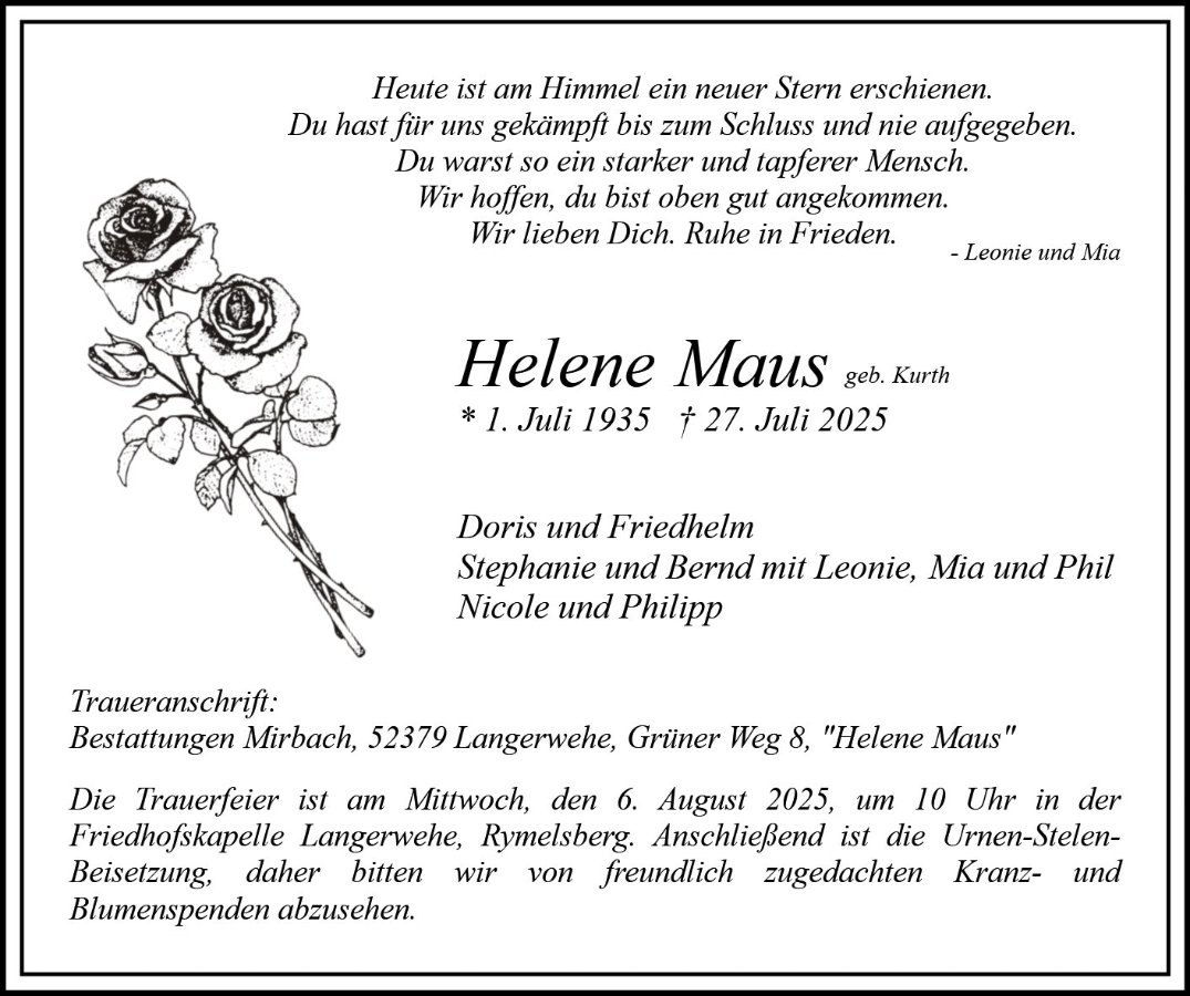 Helene Mausgestorben am 27. Juli 2025