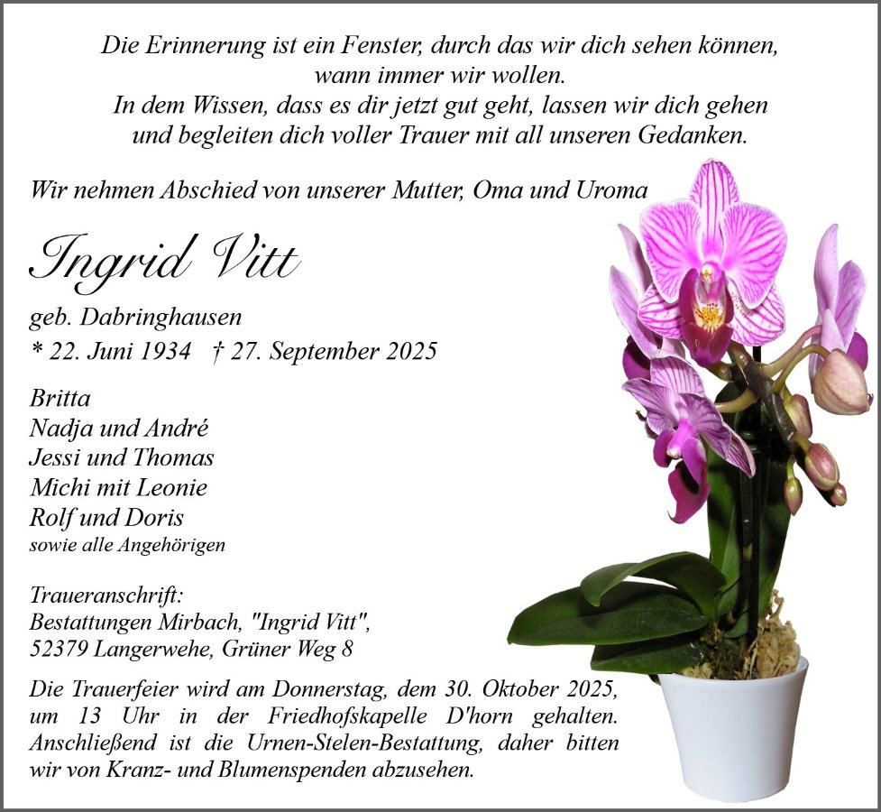 Ingrid Vittgestorben am 27. September 2025