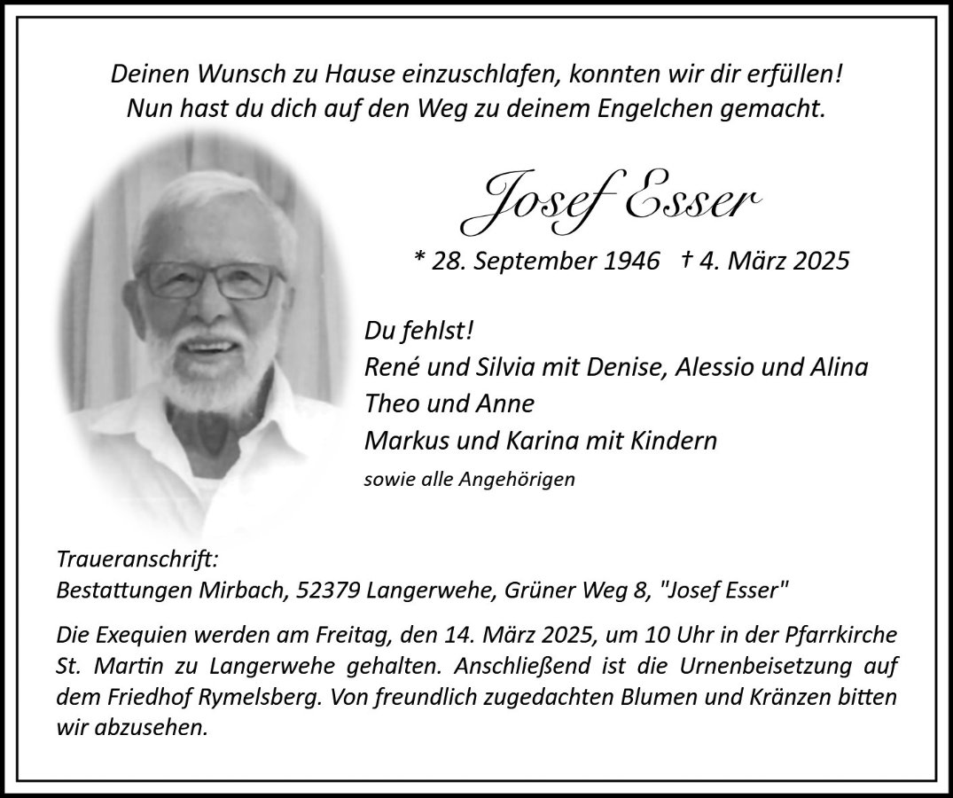 Juppi, ich werde dich nie vergessen. Jetzt kannst du mit Irenchen zusammen ihren Geburtstag da oben feiern. Du hast lange gekämpft und bist jetzt mit Irene wieder vereint. Ruhe in Frieden!!! Ihr bleibt immer in meinem Herzen. Niemals geht man so ganz