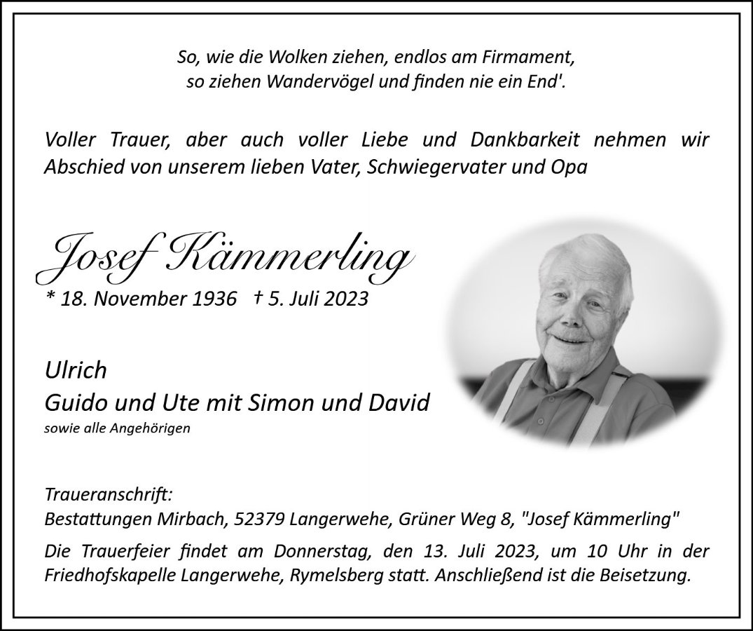 Josef Kämmerlinggestorben am 5. Juli 2023