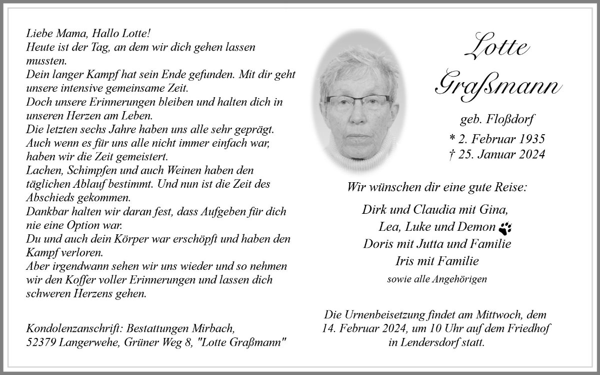 Lesen Sie hier die Anzeigen und Trauerpost!