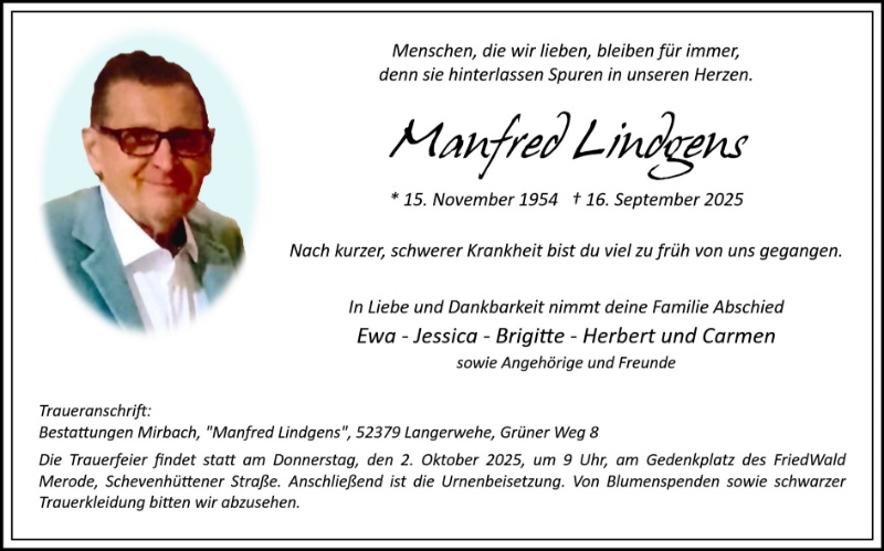 Trauer kann man nicht sehen, nicht hören, kann sie nur fühlen. Sie ist ein Nebel, ohne Umrisse. Man möchte diesen Nebel packen und fortschieben, aber die Hand fasst ins Leere. Wir wünschen Ihnen, dass diese Gedenkseite Orientierung und Licht im Nebel der Trauer bietet, zu dem viele beitragen werden.