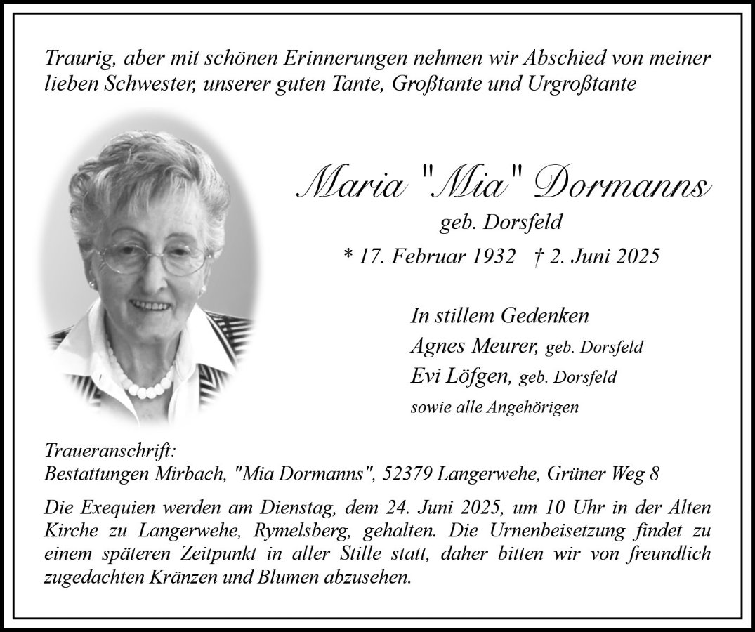 Maria Dormanns geb. Dorsfeld