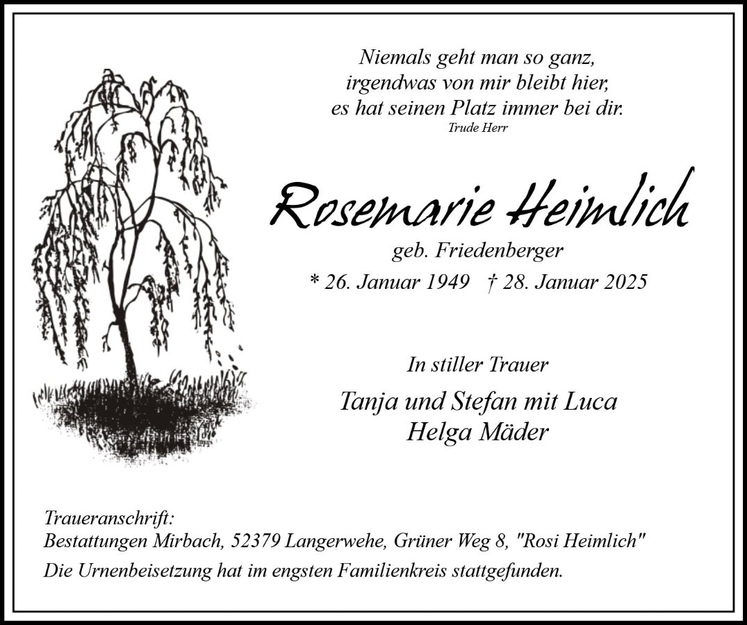 Rosemarie Heimlichgestorben am 28. Januar 2025