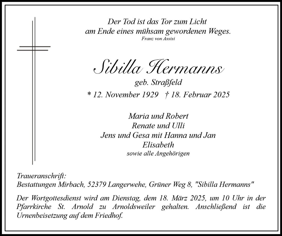 Sibilla Hermannsgestorben am 18. Februar 2025