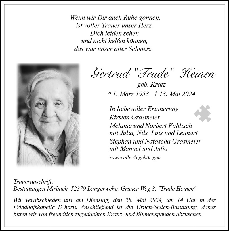 Bitte verzeih uns, dass Du in Deinen letzten Stunden alleine warst aber es hat uns Keiner gesagt, dass es so schlimm um Dich stand.