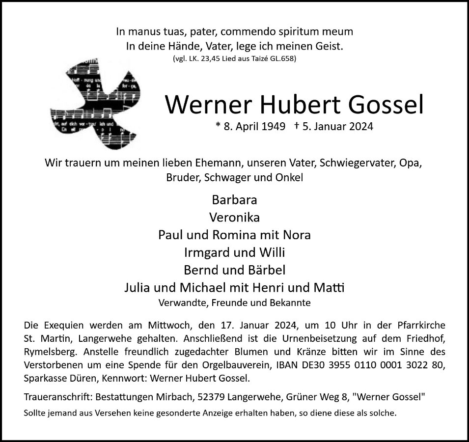 Trauerfeier mit der Urne, Friedhof Langerwehe