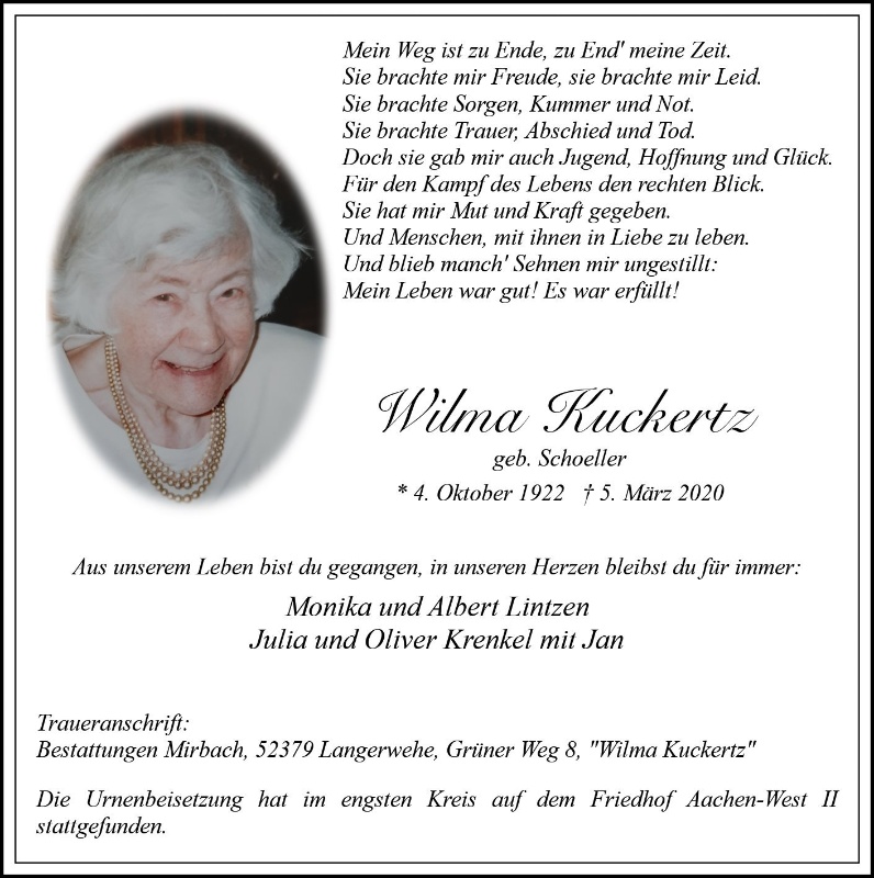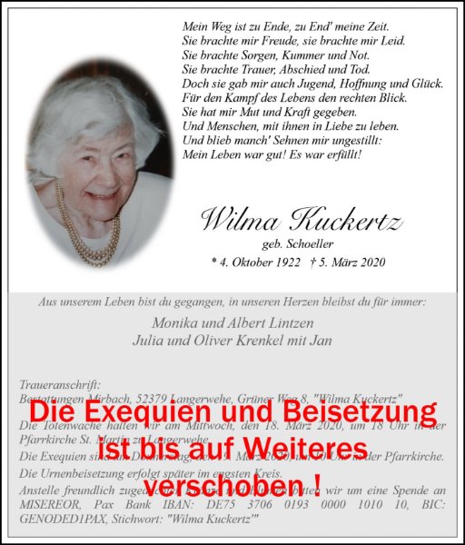 Sehen Sie hier die Termine der Abschieds- und Trauerfeierlichkeiten.